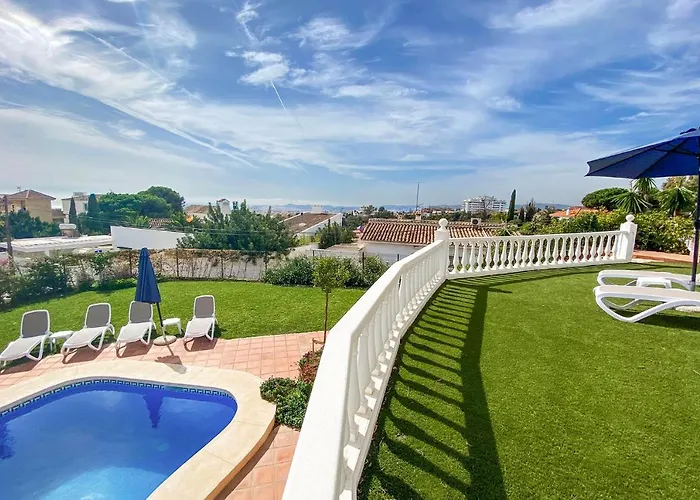 La Villa Casa Elena Fuengirola, situada a poco más de 25 minutos a pie del Monumento a la Peseta, cuenta con una terraza con vistas a las montañas.